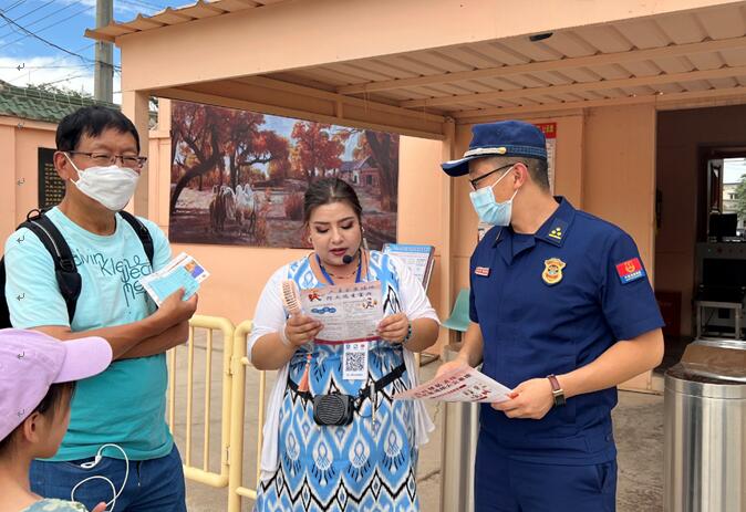 今年7月,正是新疆旅游的高峰期,库车的日均旅游人数达5万余人,各文物遗址游客爆满。这时,他又协调文旅局带领消防宣传志愿者们,冒着38°C的高温,巡查苏巴什古城和克孜尔尕哈烽燧等文物古建筑历史遗迹。一次次巡逻下来,衣服全部湿透,同事劝他休息休息,但都被他婉言拒绝了。