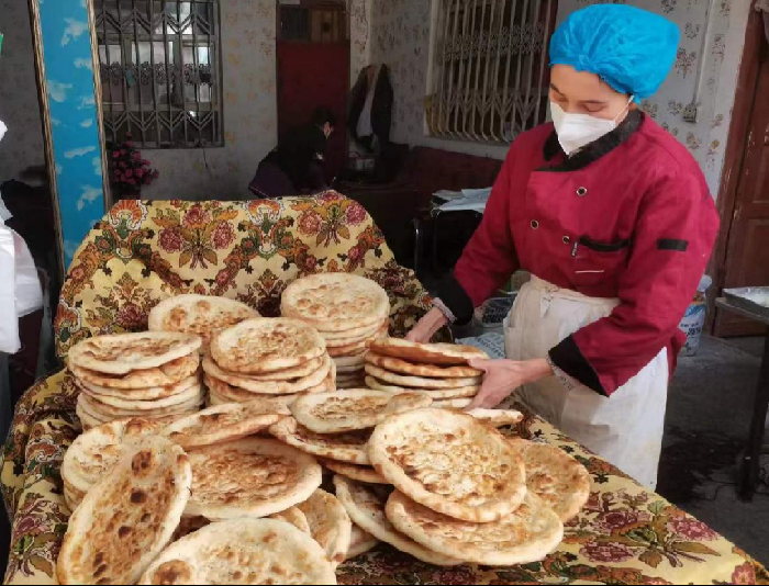 随后,崔盼龙联系了街道主要领导,协调相关部门由古勒巴格街道党工委购买25袋面粉,制定了分批次打2500个馕的计划,并及时联系了乌鲁木齐南路社区打馕的阿师傅为大家打馕。