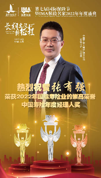 10月28日-29日,第七届国际保险节暨IMA保险名家2022年年度盛典在线上精彩绽放。万众期待的“IMA保险名家暨中国寿险年度经理人颁奖典礼”也在线上华丽表彰。中国平安人寿保险股份有限公司新疆分公司党委书记、总经理张有强凭借卓越管理理念和成功经验,一举斩获国际寿险业崇高荣誉“中国寿险年度经理人奖”。