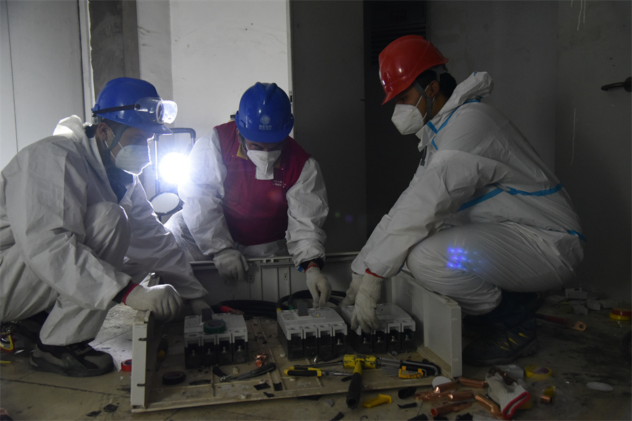 接到求助消息后,该公司高度重视,随即组织专业部门按照安全程序,对低压线路、表箱空气开关和表计出线侧等处一一进行排查,查明故障原因并确定抢修方案后,又临时抽调组建了一支38人的抢修队伍,当晚,小区恢复了部分照明。但因前期火势较大,供电设备损毁严重,需要更换400米电缆,造成抢修用时较久。