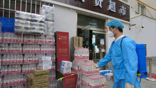 工作人员对物资进严格消杀。