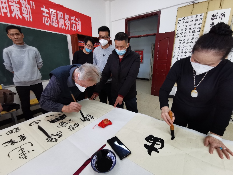 12月21日,新疆丝路书画院艺术家走进策勒县开展暖心志愿行活动。