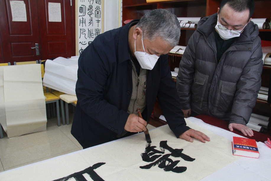 当日,国家高级茶艺师张玲老师为在场人员展现中华传统茶艺,引领在场人员在品茶中拓宽视野、交流知识、提升生活,在茶香的氤氲之中融入审美意境和价值理念。随后,陈德民院长、周同强副院长等书法艺术家与策勒县青少年活动中心书法教师进行现场交流,并开展创作。大家纷纷挥毫泼墨,以诗词、新春对联、山水风景等内容为主题,守正创新,不拘一格。随着一幅幅笔力苍劲、气势如虹的书法作品跃然纸上,现场墨香四溢,大家品鉴交流、畅谈体会,气氛十分热烈。