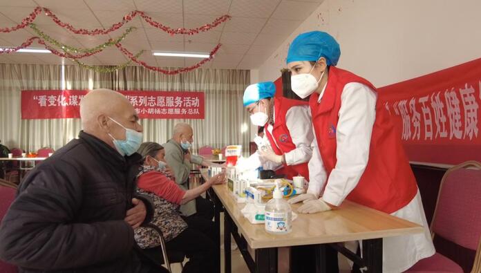 志愿者为老人们开展健康检查和养身知识宣讲。(穆合塔尔 摄)
