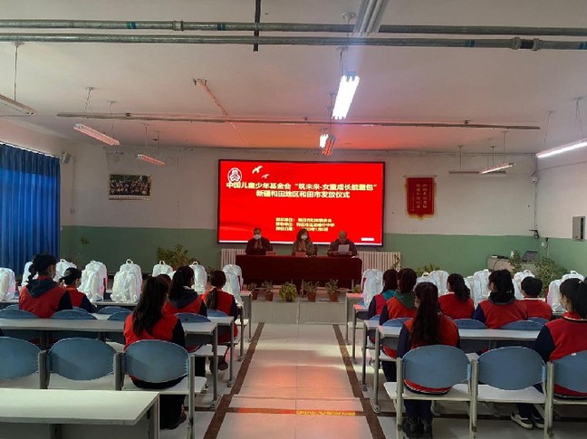 为切实推进“春蕾计划——梦想未来”行动,引导儿童树立家国情怀,懂得感恩祖国、感恩生活、感恩社会。连日来,和田市妇联在玉龙喀什中学和古江巴格乡金龙村举办中国儿童少年基金会“筑未来-女童成长能量包”发放仪式,为42名女童发放价值1.2万余元的成长能量包。