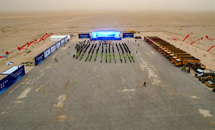开工仪式现场,工程车辆整装待发。许晓龙 摄