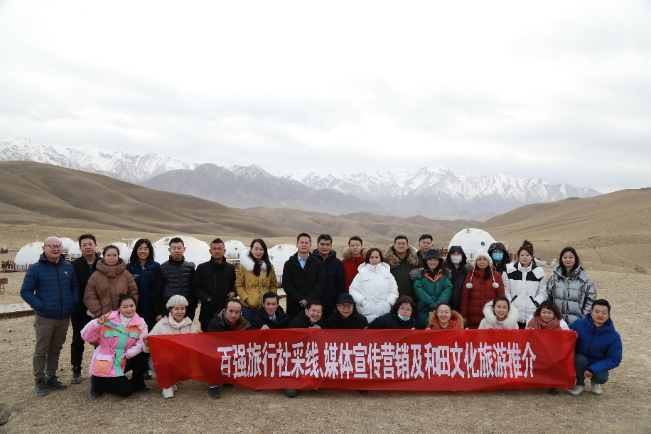 1月10日,受策勒县县委、政府邀请,全国百强旅行社彩线、媒体宣传营销采风团走进策勒,来自全国各地的近30位知名旅行社代表和区内外新闻媒体记者、网络主播来到板兰格草原进行采风活动。