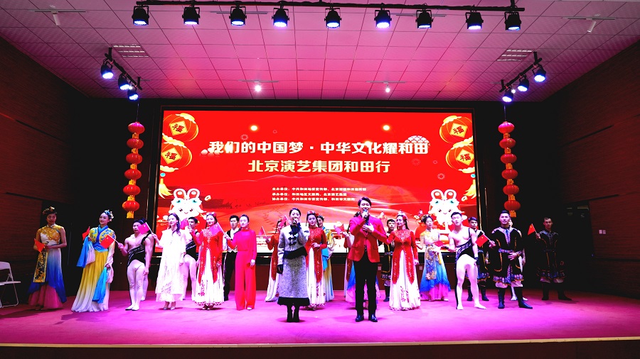 瑞雪纷纷辞旧岁,喜气洋洋迎新春。1月14日,由和田地委宣传部、北京援疆和田指挥部主办,和田地区文旅局、北京演艺集团承办的“我们的中国梦·中华文化耀和田”首都文化月演出活动走进和田市肖尔巴格乡阿依丁库勒村,来自北京的艺术家们与和田市文工团的演员们同台为村民带来了一场精彩的视听盛宴,并把浓浓的文化援疆情和新春祝福送到和田市各族人民心中。