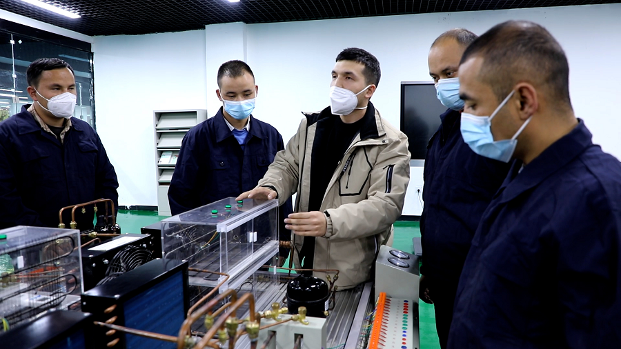 和田市高级技工学校空调制冷1班学生吾日木图拉.·吾斯曼说:“我觉得现在社会很需要这样的技术,我学完这个技术以后,拿到证书,出去找工作就很方便了。有了固定收入以后,我的生活条件会越来越好。”