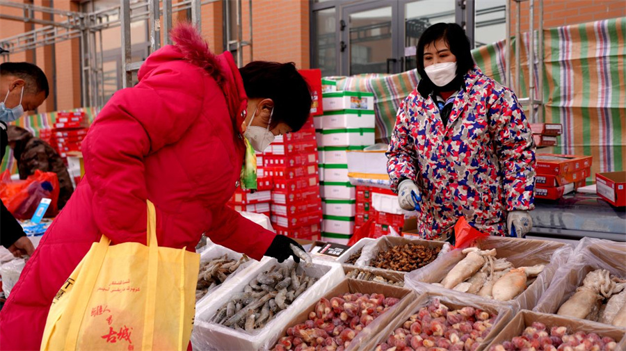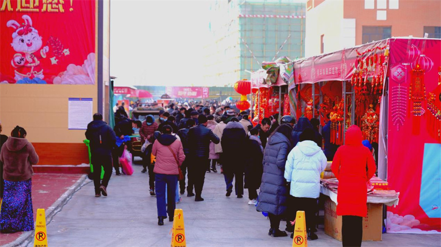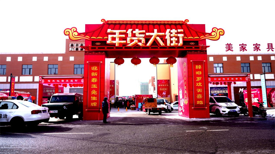 顾客们在年货节大街游览。