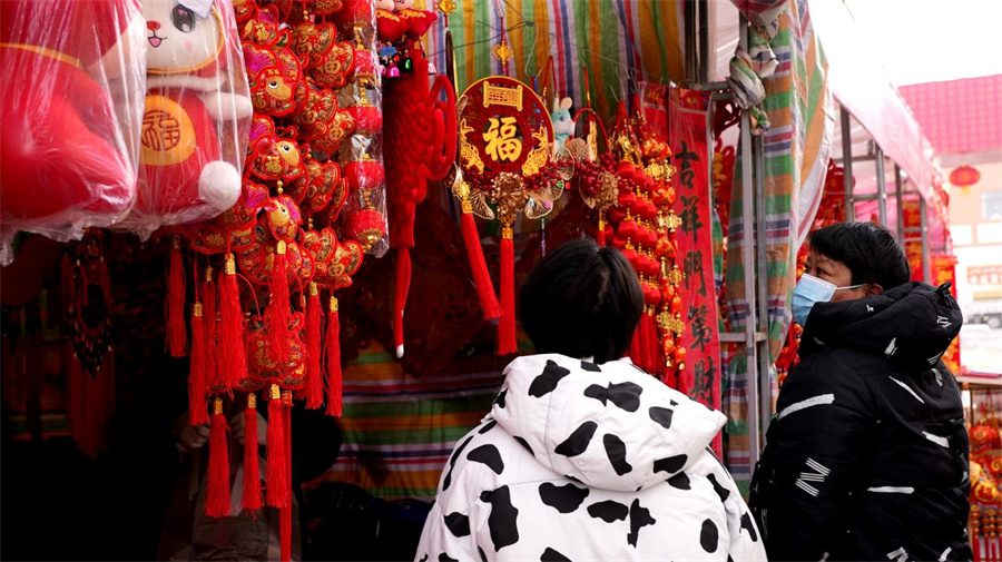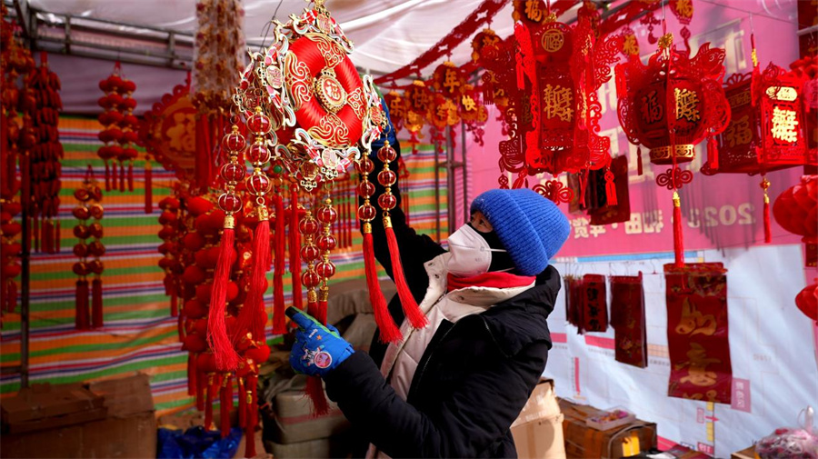 一串串红灯笼、一个个中国结随风飘荡,各种兔宝宝元素的红包、福字造型可爱,寓意吉祥的挂饰让前来选购的顾客爱不释手。记者了解到,为更好满足广大群众春节期间的消费需求,和田市玉都国际大巴扎积极协调各类资源,确保干果、蔬菜、肉蛋、奶等储备充足,全力保障节日市场供应。
