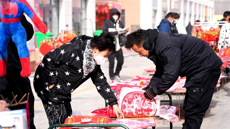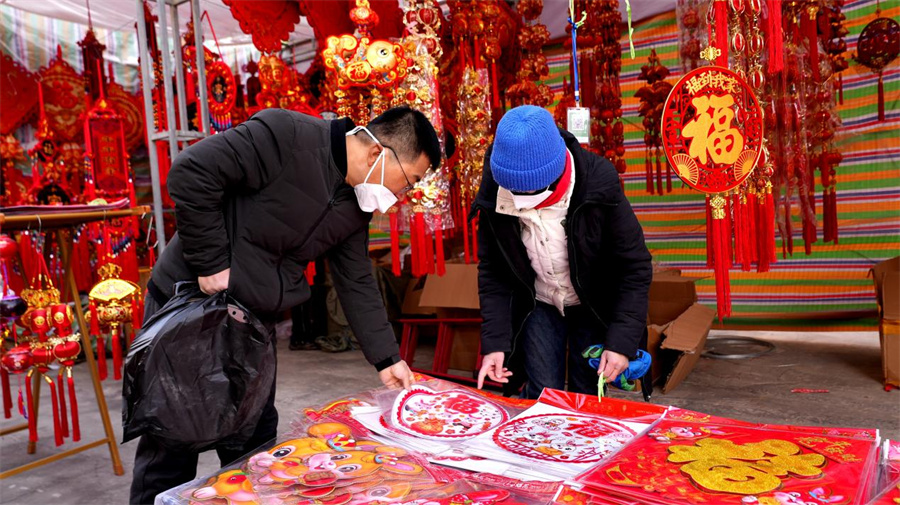 顾客正在选购窗花。