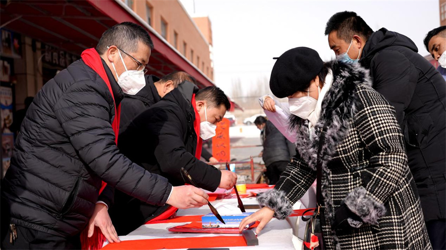 现场为市民写春联。