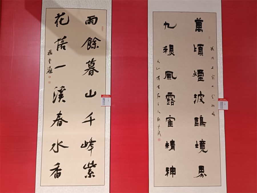 作品展展出的书法作品。(李笑 摄)