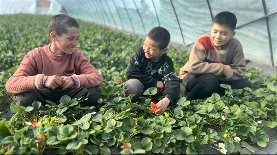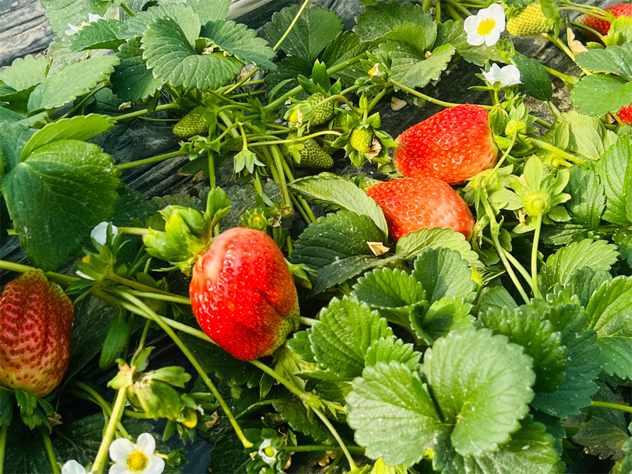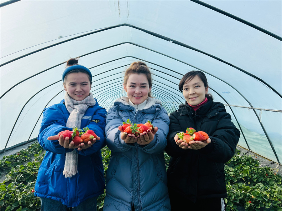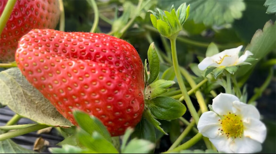 红彤彤的草莓,点亮了和田人的甜蜜生活。(玉素甫江 摄)