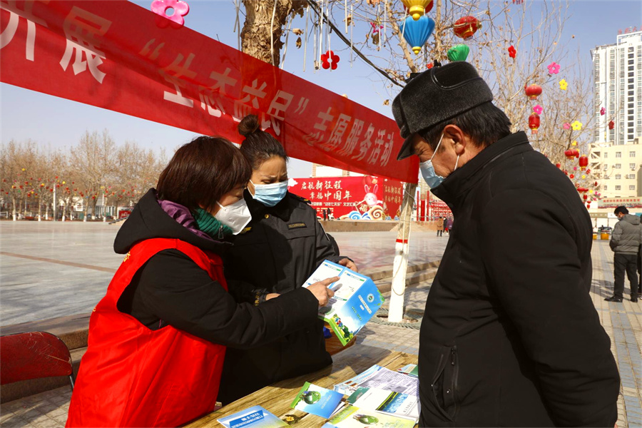 与此同时,和田地区生态环境局和田市分局组织志愿者在团结广场开展环保宣传教育、绿色低碳实践、人居环境维护、垃圾分类减量、生活污水治理等“生态益民”志愿服务活动,倡导节约资源、绿色健康的生产生活方式。