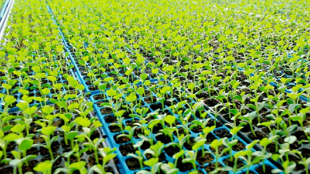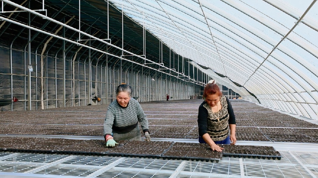 农民在铺装育苗盘。(麦迪乃姆摄)