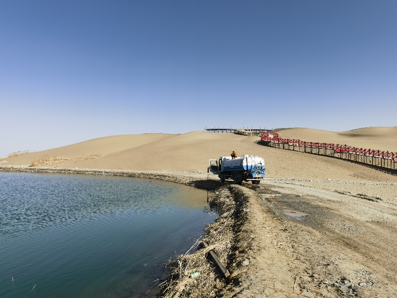 近几年,策勒县在发展旅游的过程中,打造高质量旅游景区沙海碧湖,探索生态旅游发展模式,让环境靓起来,让生态美起来。