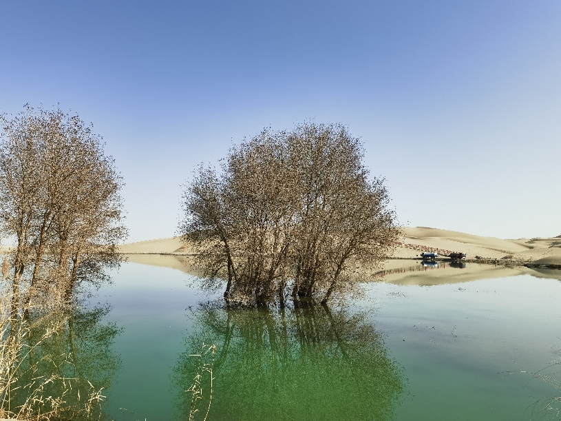 沙海碧湖是策勒县开发的重要旅游景区之一,现已成为策勒县生态建设的靓丽名片。沙海碧湖四季都是景,处处都是情。春天,这里万物复苏,湖光春色;夏天,这里绿意盎然,生机勃勃;秋天凉风习习,绚烂一季;冬季银装素裹,圣洁天地每个季节都有它独特的魅力。风婉约地吹着,水柔情地流着,春夏的生机勃勃,秋冬的枯黄冷寂,让人们感受到了大自然的美妙、岁月的美好和生命的顽强。