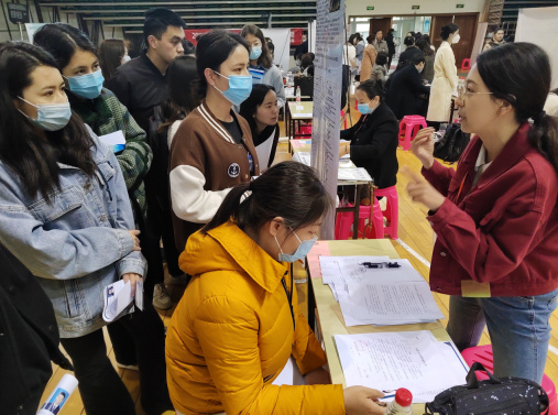 4月9日,第二场引才宣介活动在石河子大学展开。活动现场,前来咨询、应聘的毕业生络绎不绝,他们根据岗位招聘需求、本人就业意愿,认真选择适合的岗位。水磨沟区人社局工作人员热心提供岗位介绍、职业前景、薪酬保障等方面的咨询服务,当天水磨沟区共接待咨询学生130人次,初步达成就业意向21人。