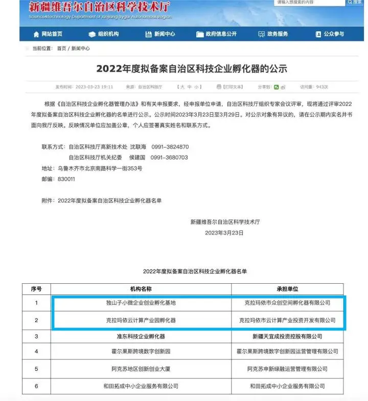 上月底,自治区科技厅发布了《2022年度拟备案自治区科技企业孵化器的公示》,克拉玛依云计算产业园区孵化器和独山子小微企业创业孵化基地成功入选自治区科技企业孵化器。此次全疆共有6家科技企业孵化器入选。