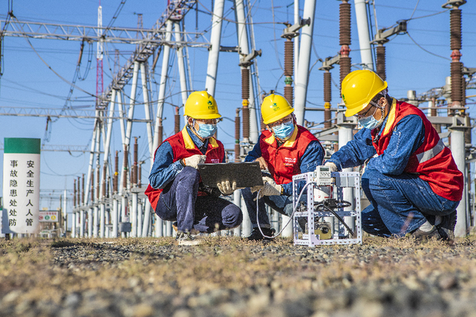 国网乌鲁木齐供电公司青创联盟成员在现场开展创新课题研究(王晋魁摄)
