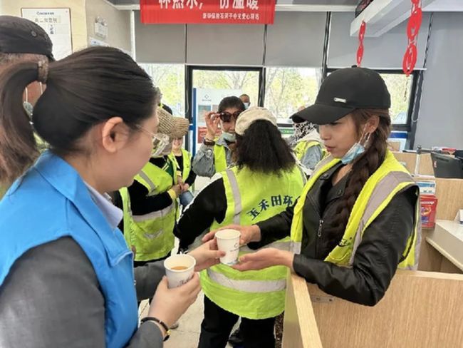 石河子中支在五一劳动节来临之际特邀请玉禾田近30名环卫工人前往职场爱心驿站歇息、做客。全体志愿者为环卫工人们送上茶水,叮嘱他们炎炎夏日即将到来,忙碌的户外作业要更加注意防暑降温,并送上节日的祝福和暖心物资。