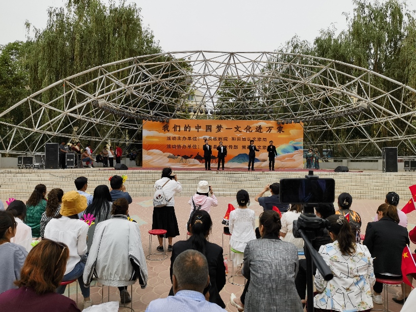 6月2日,中央歌剧院“我们的中国梦”——文化进万家艺术小分队一行12人在演出营销部主任梁寒处长的带领下,演员们带着他们的美妙歌声与热情,走进策勒县人民广场,为近2000名当地群众,送来精彩演出。