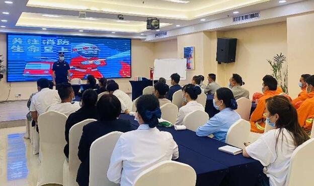 在阿克苏市辉煌大酒店,阿克苏市消防救援大队的消防宣传人员结合酒店特点,通过消防知识讲座的形式,为酒店员工普及消防基础知识、社会单位消防安全四个能力、电器防火知识、消防设施器材使用方法、火场逃生自救等内容,活动现场气氛热烈,充分调动酒店员工参与消防安全的积极性。同时,为使广大员工掌握防范、灭火、自救、逃生知识能力,消防宣传人员结合预案,现场模拟警情,组织酒店员工开展实地灭火疏散逃生演练。