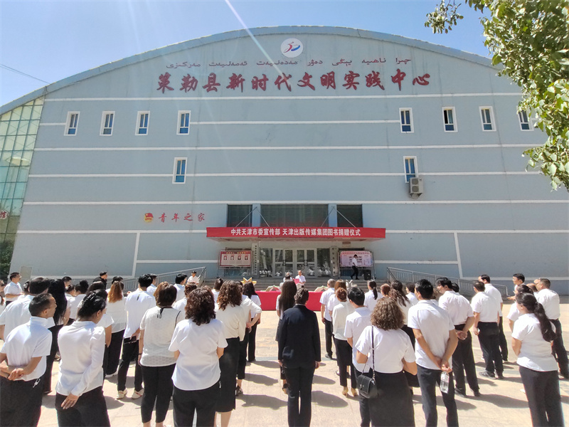 7月13日上午,天津市委宣传部、天津出版传媒集团向策勒县捐赠图书仪式在策勒县图书馆举行,天津市委宣传部副部长李旭炎、天津市市委支部生活副总编岳涛一行4人以及地委宣传部等人出席,策勒县委主管宣传相关领导,策勒县文旅局等相关部门人员参加活动。