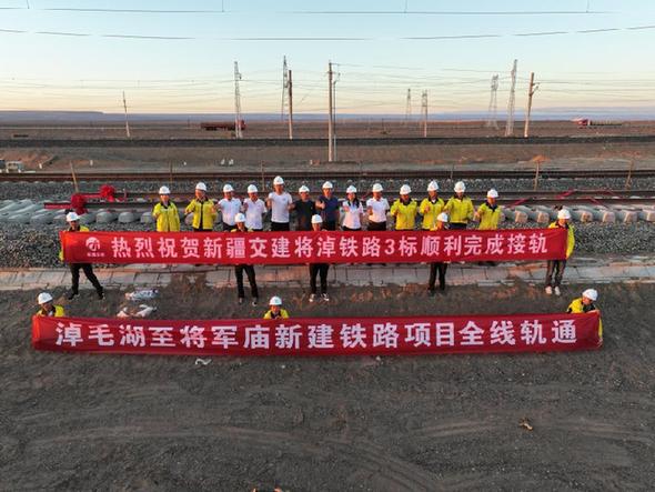 历时2年,数以千计的铁路建设者在大风无人区内,克服无水无电无信号、顶着狂热的风沙日夜奋战,在2023年8月22日21时,迎来了将淖铁路重大节点,随着最后一对500米长钢轨稳稳落在轨枕上,标志着将淖铁路3标项目铺轨工程161.996KM全线贯通,为“9•19”通车目标奠定了坚实基础。
