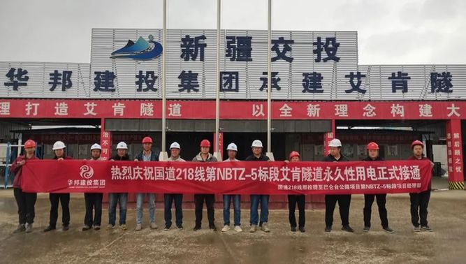 艾肯隧道穿越艾肯达坂山脉,由于高寒高海拔气候地理环境及当地电力供应基础条件所限,自开工建设以来,一直无永久性高压电接入。特别是艾肯隧道出口及斜井,通电条件尤为困难,成为制约工程建设进度的主要瓶颈,为了加快艾肯隧道项目的正式通电,那巴五标团队成立攻坚小组,积极与业主单位、当地政府部门、电力部门、电力建设单位多方协调沟通,周密协同部署,克服恶劣气候地理环境、薄弱电力基础条件等重重困难,为永久性用电成功接通创造条件。最终,经过各方努力及政府社会大力支持,艾肯隧道建设项目永久性用电顺利通过验收,实现正式通电。