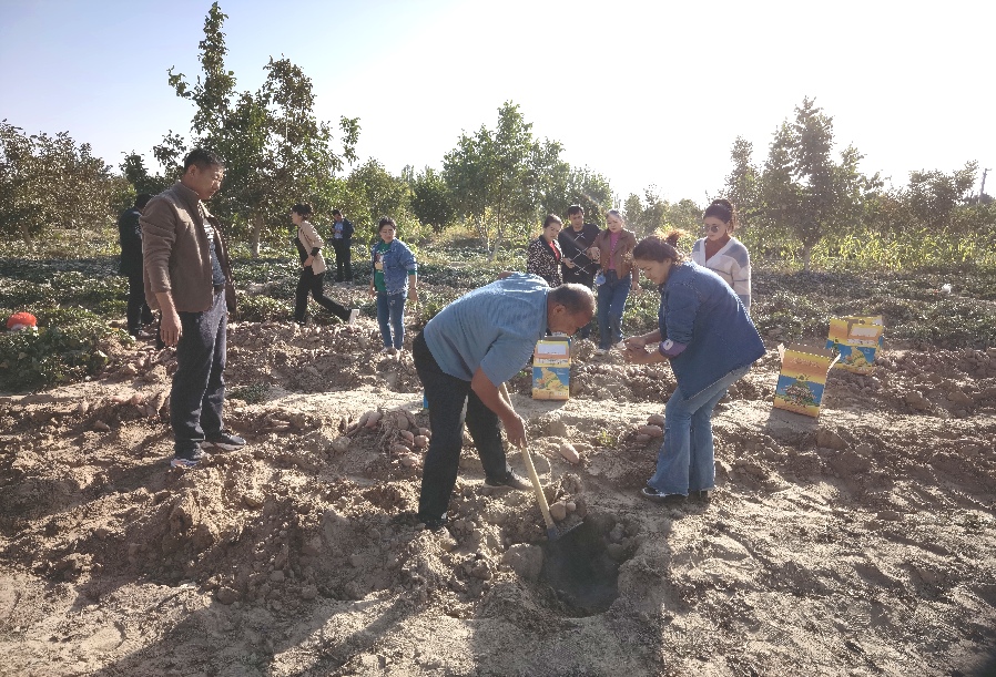 种植一片红薯,发展一个产业,富裕一方百姓。通过工作队和村“两委”的研究探讨,最终决定先进行试点种植红薯、密薯、紫薯,并实地勘察优质红薯苗、联系种植专家进行技术指导等工作。从种植到采收过程中,工作队和村委会干部对这些种植户,进行了科学决策,从试验种植的薯种分苗、品种区域规划、种植方式、耕地施肥、病虫害防治、起隆开沟、行距播种、种植深度和田间管理等进行了全面的指导及讲解。目前,萨依吾斯塘村种植红薯四十亩,每亩约产红薯1000至2000公斤以上。红薯生长快,见效快,加上专业管理,小小红薯不仅让村民日子“火”了起来,也让村民的腰包鼓了起来,驻村工作队真正把小红薯作成了“大文章”。