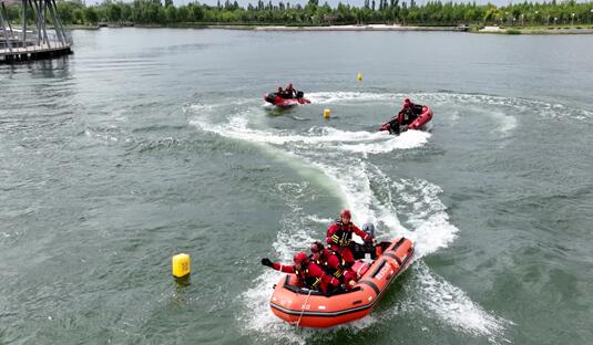 同时,地区级轻型水域救援队设置管理、搜索、营救、医疗、战勤等五大力量板块;水域救援人员涵盖指挥员、安全员、救生员、上游观察员等四类岗位,形成团队化、专业化救援模式。针对重点流域洪灾和台风灾害特点,支队还建立健全了日常训练、演练、响应、出动、考核等机制,制定专项训练、演练方案,定期组织开展快速集结、联合演练等拉动训练,规范水域救援和抗洪抢险处置程序,提升专业处置水平,为全地区乃至全疆打造成高、精、专的水域救援尖兵贡献“阿克苏消防力量”。