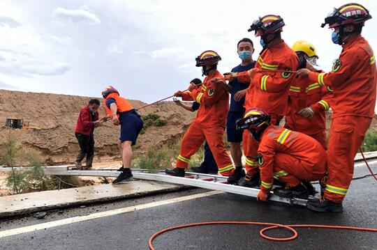 2022年8月29日18时许,温宿县吐木秀克镇一牧民在河道岸边放羊休息途中,被上涨的河水围困在一浅滩上。温宿县城区消防救援站接警后紧急出动到场救援。救援现场,河道宽约70余米,牧民被困位置距离岸边约30余米,眼看浅滩逐渐被河水淹没,消防救援人员利用救生抛投器将救生绳抛投到被困牧民浅滩位置。然后,一名消防救援人员在做好防护后,携带救生衣、消防全身吊带等装备,利用绳索横渡到被困牧民位置,将防护装备给牧民一一穿戴好,岸边其余的消防救援队员则紧紧拉住牵引安全绳索,20多分钟后,消防救援人员成功将被困牧民营救上岸。