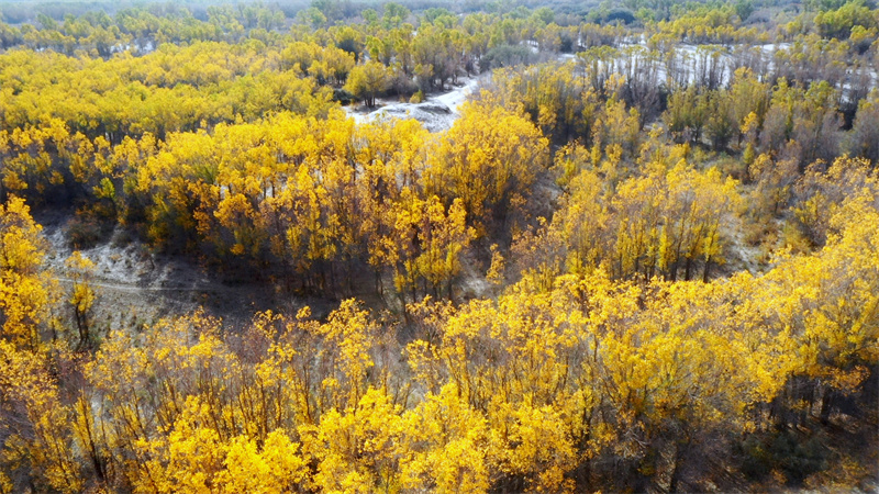 近年来,策勒县对脆弱的胡杨林区域采取引洪灌溉、引洪封育、建坝拦水、河道疏通等方式进行保护性修复,进一步提升胡杨林的生态效益,巩固了当地公益林生态系统的稳定性。
