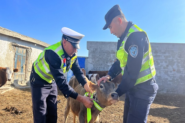 交警大队副大队长杜霖枫说:“近期,我们开展为牲畜绑反光带专项行动,目的是为了有效降低夜间车辆碰撞牲畜道路交通事故的发生,从源头上加强道路周边牲畜的管理,保护了农牧民群众的财产安全。”