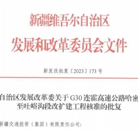 10月15日,G30连霍高速公路星星峡至哈密段、哈密至吐峪沟段改扩建工程项目前期工作取得重大阶段性进展——获得自治区发改委核准批复,为项目开工建设奠定了坚实的基础。