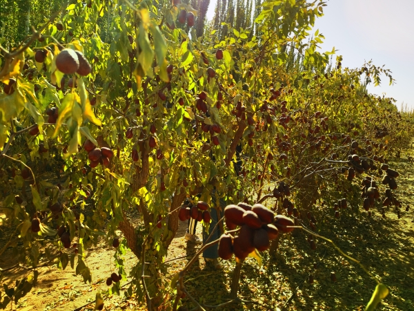 从沙进人退到“点沙成金”,如今的策勒县,全县林地总面积达到了102.23万亩,其中:天然林面积45.42万亩,以红枣、核桃、杏、石榴等经济林种植面积43.37万亩,防护林面积13.44万亩,森林覆盖率达到了2.16%,实现了全县森林面积、森林蓄积、森林覆盖率三增长,建成了促进和保障经济社会可持续发展的生态安全屏障。经济林果面积达到42.58 万亩,已成为农民稳定增收的重要来源。实现了从“沙进人退”到“绿进沙退”的根本性转变。展望未来,策勒县将在中国科学院新疆生态地理研究所策勒沙漠研究站引领下,进一步更深层次、更广领域践行“两山”理念,不断打通绿水青山向金山银山的转化和增值通道,打造生态、生产、生活“三生融合”的样本。从沙进人退到绿进沙退,再到人沙和谐、绿富同兴,多年的探索与奋进,策勒县沙地治理的量变累积为质变,沙地“破茧成蝶”至荒漠化和沙化面积实现“双减少”,绿色已成为策勒县沙地的一种信仰。打造绿色产业,发展绿色经济,从“盼温饱”到“盼环保”,从“求生存”到“求生态”,绿色充盈整个策勒平原大地。