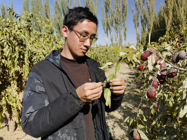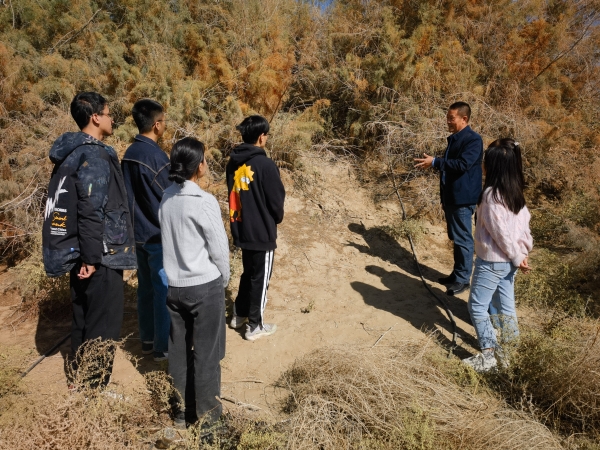 “我们现在位于中国科学院新疆生态与地理研究所策勒沙漠治沙站,这里是沙拐枣种植基地,这是七八十年代第一批种植的,这里是位于沙漠的口子。这个沙拐枣种在这里的优势,就在于它的种子比较易传播,它是随风而动,遇水则发。只要一有风,它就可以传播到其他的地方。种植面积不是通过人为的方式,它就自然而然扩大了。它就是一遇到很少很细微的水分,它就可以生长起来。所以它对防风固沙一个作用就更加明显了。也就比其他的防风固沙更有优势,这里头还有一些柽柳,柽柳这种植物对于这个耐盐性,其实比沙拐枣是更好一些。它也是一种防风固沙的先锋植物,也具有一个重要的作用。”中国科学院新疆生态与地理研究所策勒沙漠研究站研究生齐艳莹说。