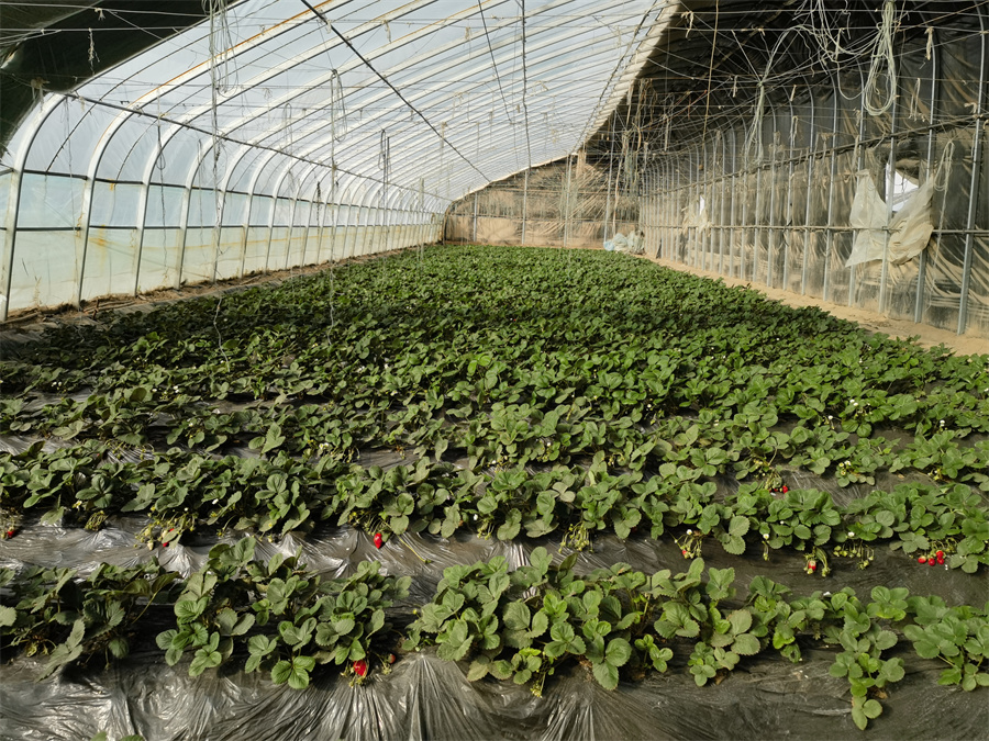 津南新村位于策勒县工业园区和315国道旁产城融合区的现代设施农业产业园区的西北部,交通方便,产出的果蔬便于销售。村民搬迁前,在山区主要种植小麦、玉米,生活水平较低,村集体经济薄弱,属于经济相对落后的乡村。自2017年搬迁下来以后,策勒镇镇政府通过奖补扶持、党员和种植大户引领带动等方式,让越来越多的农户加入特色瓜果种植行列。津南新村有400余座大棚,仅草莓及其他特色林果瓜种植大棚就达到70座。这里的草莓一般在8月底栽种,10月底就能上市,一直能持续到第二年的五六月份,一茬接一茬,小小草莓撑起了津南新村的“甜蜜产业”。