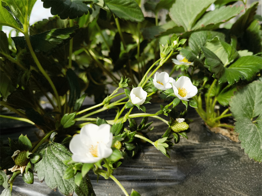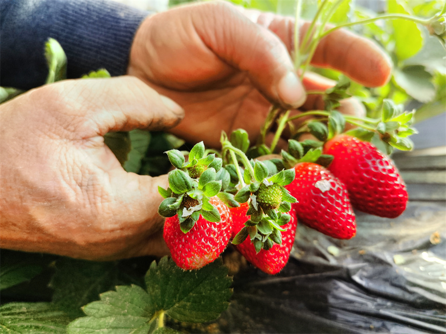 来到津南新村晁青山家的草莓大棚里,一垄垄草莓长势喜人。绿叶白花间缀满了一颗颗鲜红的莓果,个大饱满的草莓散发着淡淡的奶油香味,一颗颗红彤彤的草莓,鲜嫩欲滴,十分诱人。慕名而来的游客提篮穿梭其中,体验采摘的乐趣,丰收景象“甜蜜”来袭。晁青山说:“我们大棚种植的奶油草莓香甜、个大、口感好,大人孩子们都很喜欢吃,预计年收入能够达到40万左右。”晁青山目前种植了4座大棚草莓。“一个大棚平均纯收入能达到2.5万元。”在此之前,晁青山他还种植了大棚西梅、油桃、葡萄、樱桃、李子等特色高端水果。自今年8月20日种植了草莓以后,在他的精心照料下,大棚里草莓的长势诱人,目前一座大棚草莓亩产保持在2500公斤左右。为提升草莓的品相和口感,满足受众对高品质的追求,晁青山从草莓有机肥料配比、室温控制、种植技术、病虫害防治等方面不断探索,才有了现在又大又甜的草莓。