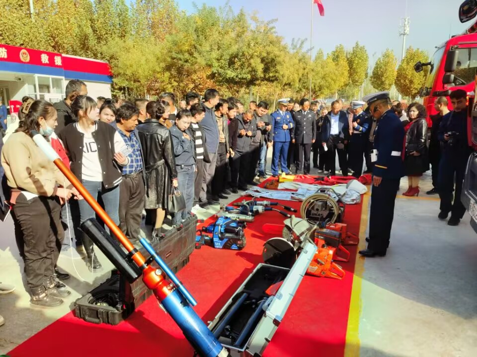 仪式结束后,与会人员共同参观了活动的各个展区,各展区以多种形式开展火灾防控宣传活动,包括消防器材展示、消防常识咨询、灭火实操等,向干部群众普及消防法律法规及消防常识。另外活动现场设置了消防器材展示区、消防车辆展示区,进行消防小常识、消防技能等内容的宣传,参加活动人员踊跃参与体验消防器材的使用,学习和掌握消防安全知识。活动现场还设置了执勤车辆装备展、水域激流模拟救援、消防灭火救援实战操法展。在消防器材装备展示区,液压破拆工具组、无齿锯、机动链锯、地震位移器、雷达生命探测仪、救生抛投器等各类先进的应急救援器材装备展示,让大家收获满满的安全感。大队宣传人员用通俗易懂、深入浅出的方法向群众介绍消防安全知识,受到了群众热烈欢迎,有效地增强了群众的防火意识和防火技能,进一步激发了群众在日常生活中关注消防的积极性。