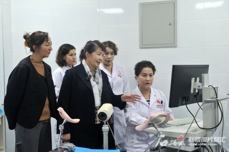 11月2日,玛依努尔·尼牙孜(前排中)在洛浦县妇幼保健院了解当地宫颈癌防治工作,并给与指导