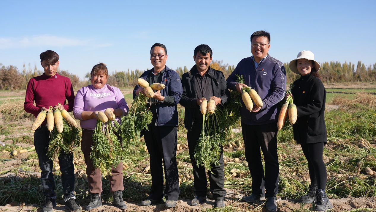 搬运、过磅、登记、转账、收款……11月18日,在新疆和田地区洛浦县杭桂镇霍热孜托格拉克村的白萝卜干收购现场,大车小车往来不绝,企业收购员、村民都忙得不亦乐乎,报称声、欢笑声此起彼伏,大家脸上洋溢的丰收喜悦如初冬暖阳般和煦。今年以来,新疆商贸物流集团驻霍热孜托格拉克村工作队持续立足全村实际和群众需求,坚持多措并举,注重多管齐下,下狠劲、出实招加快富农增收,有效为乡村振兴蓄力赋能,不断提升群众获得感、幸福感。