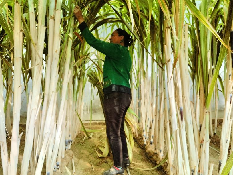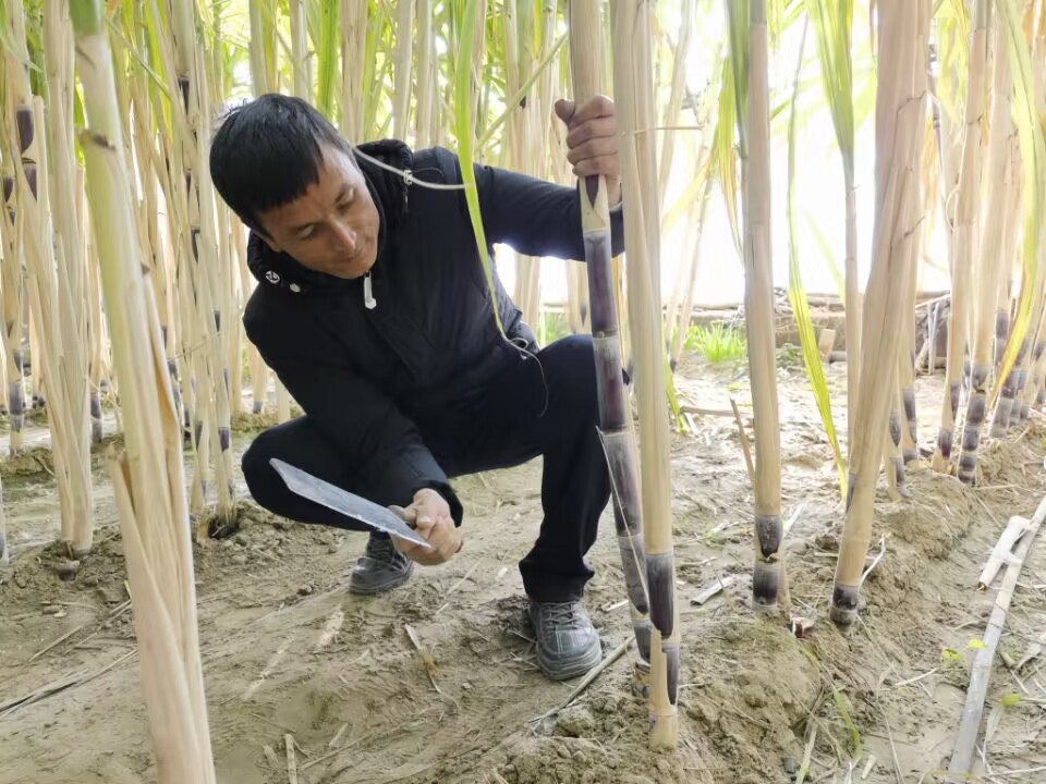 今年46岁的布麦热姆罕·热杰普,在镇党委、镇政府的引导下,第一次试种了一个大棚的甘蔗,没承想却一下子试种成功了,种植的甘蔗甘甜如蜜,也获得了大丰收。她高兴地说:“这儿的土壤、气候、水质很适合种植甘蔗,头一年种植就迎来了大丰收。”她的甘蔗松脆多汁、皮薄杆长,客人尝了以后都说甜得很,比超市里卖的甘蔗味道还好。