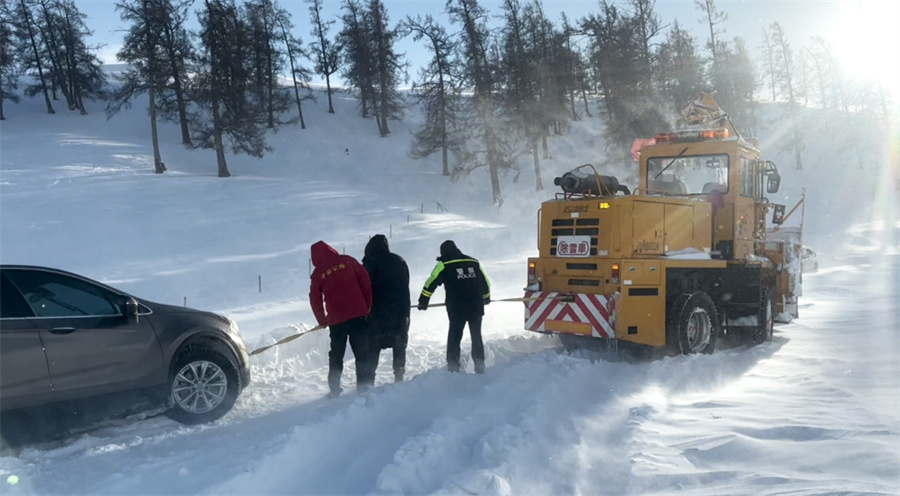 在哈巴河县至布尔津方向、185团方向,喀纳斯景区、白哈巴村、铁热克提乡等路段,阿勒泰公路管理局哈巴河分局及时派出2辆巡道车,对辖区管养路段进行巡道,派出了6台除雪机械,保障道路畅通。截至4日19时30分,阿勒泰公路管理局哈巴河分局累计清理积雪积冰264840立方米,撒布融雪剂30吨,救助社会车辆1辆、人员4人。