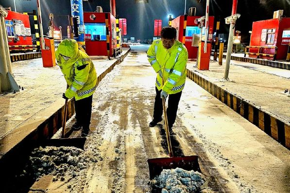 在凛冽的寒风中,各站领导带领在岗职工拿起扫把、推雪板、铁锹清理积雪,大家分工合作,干劲十足,仅用1个小时就迅速清扫完收费广场及站区院内的积雪,这扫出来的一条条畅通、整洁的道路,不仅是群众出行的“平安路”,更是通向群众内心的“温暖路”。