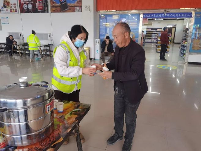 12月14日,G30线高速公路出现断崖式降温且受大风天气影响交通管制。凌晨5时左右,仍有车辆陆陆续续进入新疆交投集团吐鲁番分公司吐峪沟主线收费站入口等待解除管制,随着车辆越来越多,司乘人员也从刚开始耐心地等待变得越来越着急。在这寒冷的天气,收费站工作人员和高昌区交警、应急管理局、路政“四方联动”,为过往的司乘人员提供开水、馕饼、泡面、榨菜及简易修车工具等,并送上一句句暖心窝的温馨提示,对路线询问等相关问题给予专业答复,将新疆高速人良好的精神风貌展现给社会大众,传递满满的正能量。