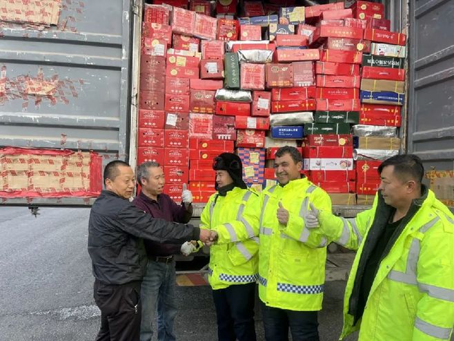 “师傅,快停一下车,您的货物掉了!”12月14日16时许,新疆交投集团吐鲁番分公司库米什收费站出口,一辆装有各式箱子的集装箱,因车门没锁紧,导致货物跌落。在值班长的呼喊声下,司机停车发现箱子掉落一地。“师傅,您先别着急,我们来帮您!”随即立刻安排专人引导后方车辆有序通行,同时组织执勤人员立即化身“搬运工”,在大家齐心协作下,终于将散落一地的货物重新整理完毕,司机临走前再三表示感谢。